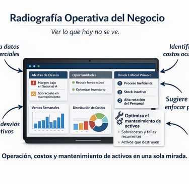 En operaciones complejas, crecer en ventas no garantiza mayor utilidad. El impacto económico está en identificar los puntos donde la operación pierde rentabilidad. Aplicando ciencia de datos e IA realizo una "Radiografía operativa del negocio" para lograr resultados financieros en muy corto plazo.